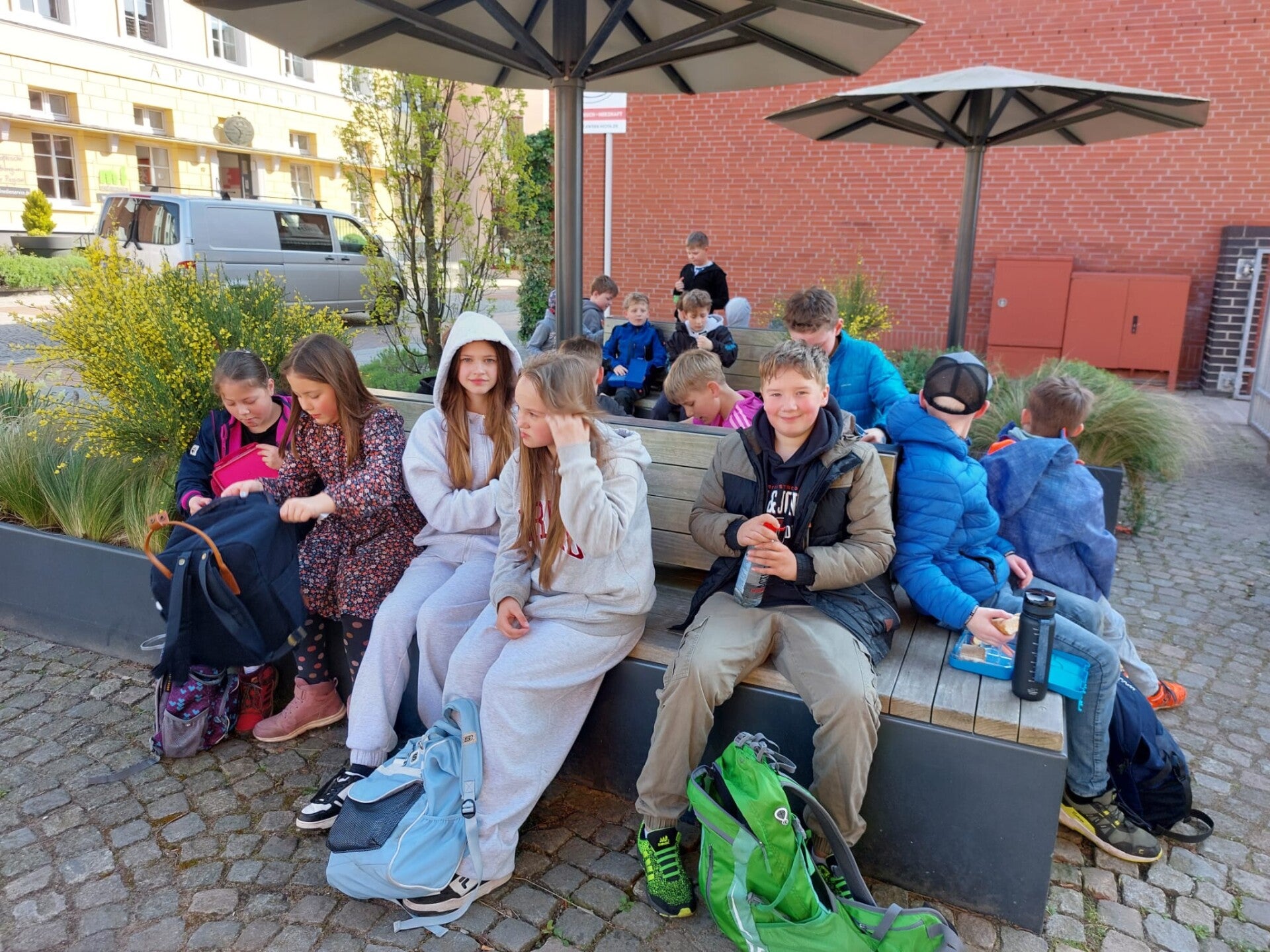 Anlässlich des Welttages des Buches (23. April) nahmen die beiden Klassen an der Aktion "Ich schenk dir eine Geschichte" teil. In der Leserei wartete eine tolle Überraschung auf die Kinder: Jeder erhielt den spannenden Comic-Roman "Cool wie Bolle", der eigens für diesen besonderen Tag ausgewählt wurde. Doch damit nicht genug – der Vormittag wurde durch ein fröhliches Picknick vor der Buchhandlung und eine abwechslungsreiche Leserallye in der Leserei abgerundet.